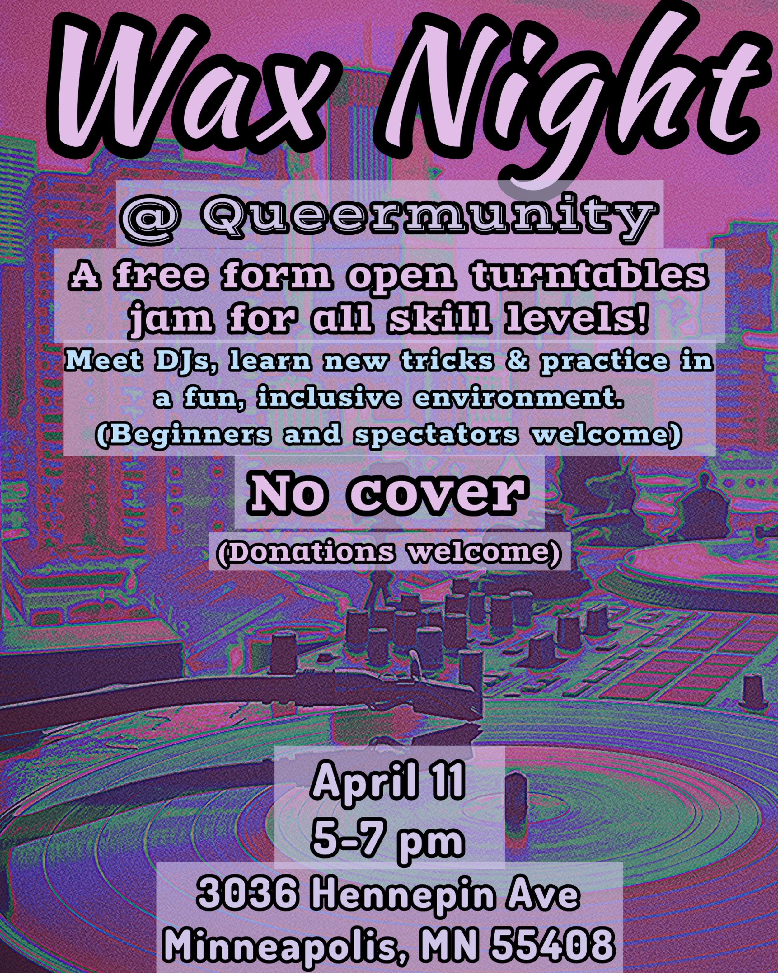 A free form open turntable jam session for all skill levels! A great way to meet, trade advice & techniques with other DJs, and to learn and practice in a fun, low pressure environment.