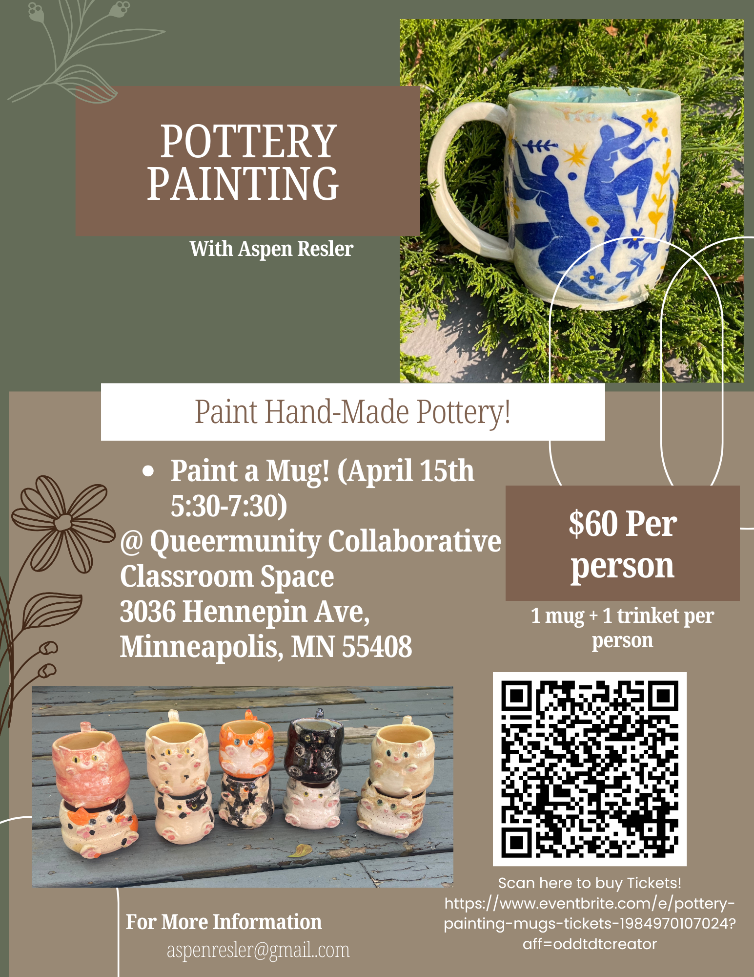 Join us in person for a fun-filled pottery painting session where you'll transform hand-thrown mugs into your own unique masterpieces. Bring your friends, bring your ideas, and let’s make some mugs!