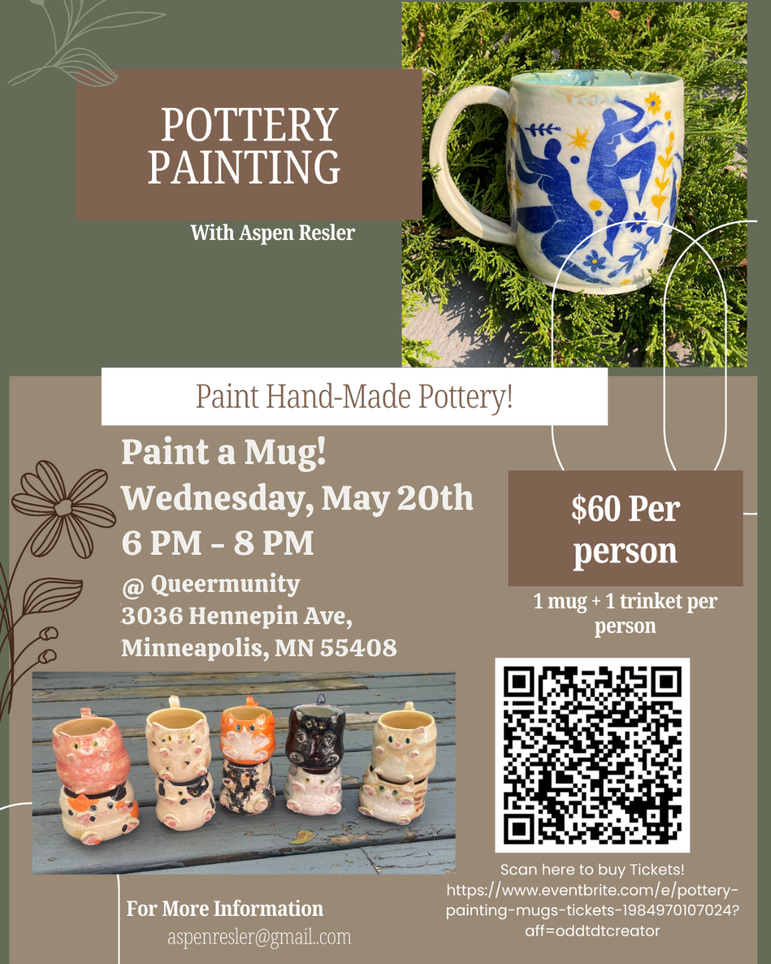 Join us in person for a fun-filled pottery painting session where you'll transform hand-thrown mugs into your own unique masterpieces. Bring your friends, bring your ideas, and let’s make some mugs!