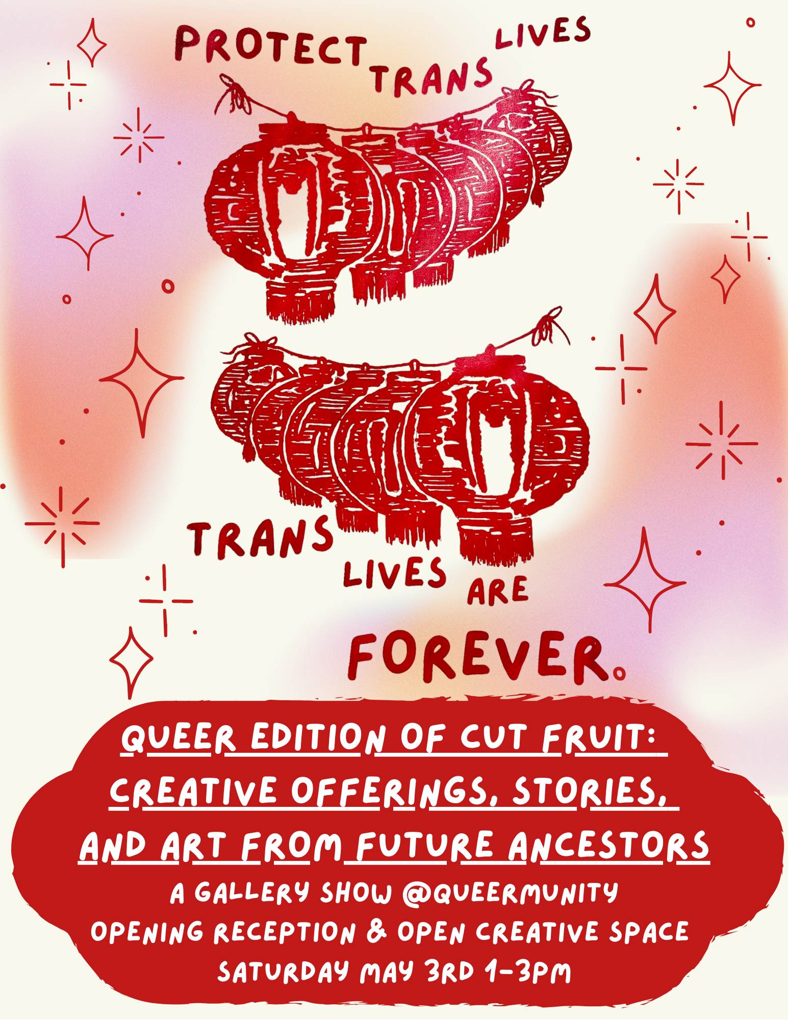 Celebrate the opening of Cut Fruit: Queer Edition—a vibrant gallery show featuring art, writing, and creative offerings from queer AAPI artists and future ancestors. This special edition spotlights work from contributors to The Paper Lantern Project, including pieces from their first zine, creations by cohort members, and contributions from the extended community.